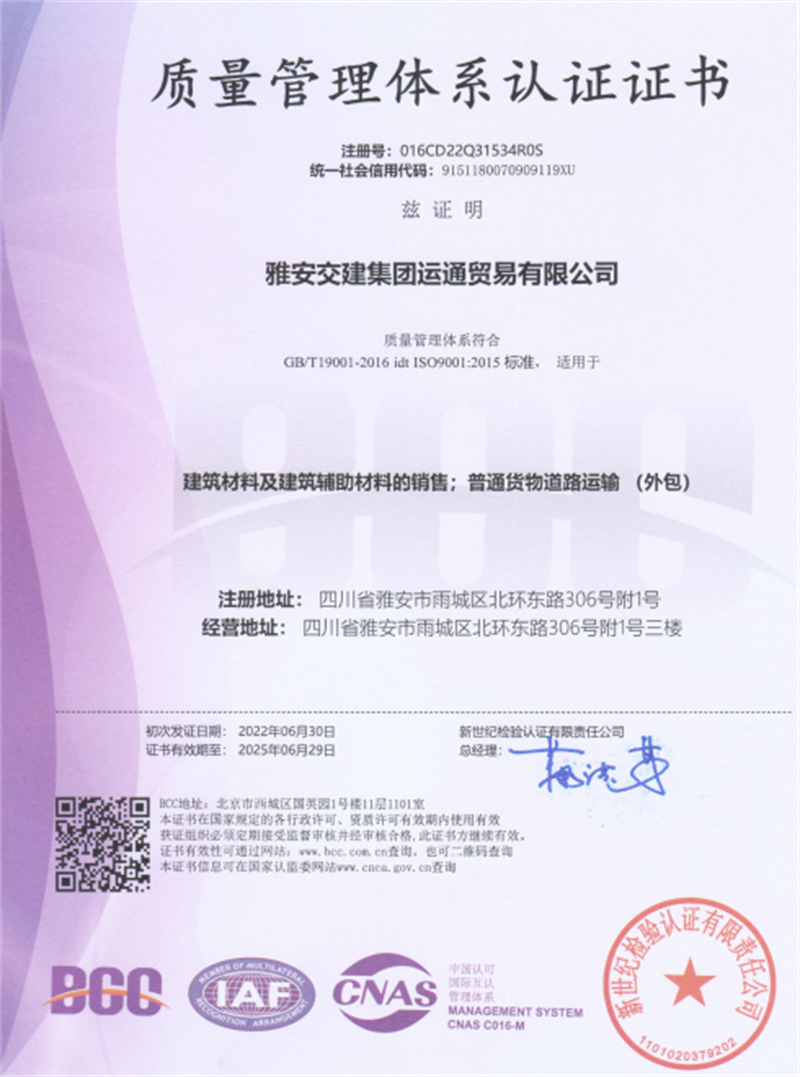 运通公司将持续有效推进质量体系运行的科学化、规范化,将质量标准贯彻落实到每一项工作、每一个环节中,为公司持续稳定健康开展给予重要保障。