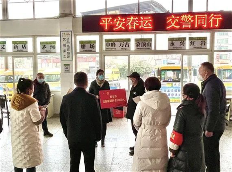 赵雅玲一行深入名山汽车客运站,看望慰问四川蜀通运业有限责任公司名山分公司春运工作人员,为一线职工送上新春祝福,殷切关心、仔细询问企业生产和职工工作和生活情况。