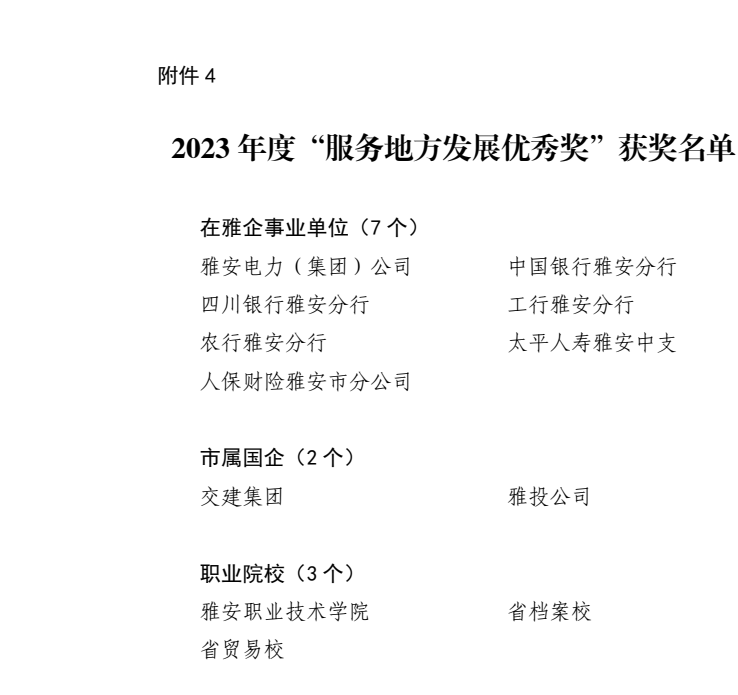 近期,中共雅安市委办公室、雅安市人民政府办公室印发《关于2023年度县(区)、市级部门和单列考评单位目标绩效综合考评结果的通报》,威廉希尔集团取得2023年度“服务地方开展优秀奖”。