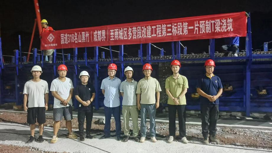 首片预制T梁的成功浇筑,标志着国道318名山区黑竹(成都界)至雨城区多营段改建工程三标段建设取得重要阶段性成果,为实现年度目标注入强大动力,为有助于地区交通开展建设贡献力量。
