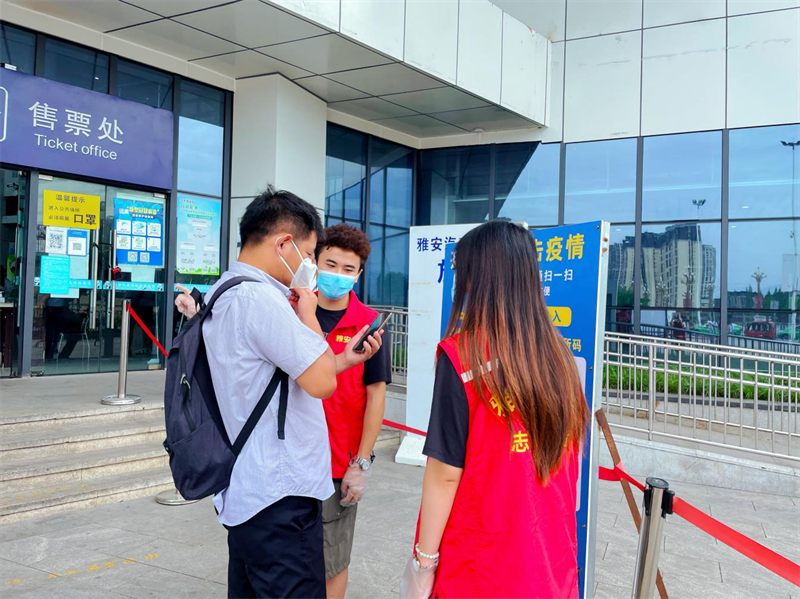 青年志愿者们严格遵守雅安市汽车客运站站长葛举康为大家讲解的疫情防控工作要求,持续投身志愿服务,分别在雅安市火车站进出站口、雅安市汽车客运站进站口、售票大厅、候车厅等点位驻守,劝导旅客戴好口罩、查验场所码、行程码及核酸报告,并向乘客宣传疫情防控知识,时刻提醒旅客保持安全距离,认真维护现场秩序。