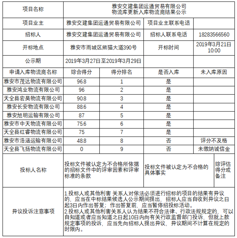 威廉希尔集团运通贸易有限公司物流库更新入库物流商结果公示
