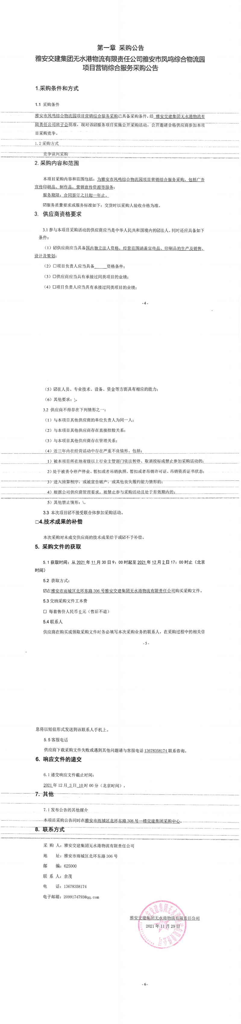 威廉希尔集团无水港物流有限责任公司雅安市凤鸣综合物流园项目营销综合服务采购公告