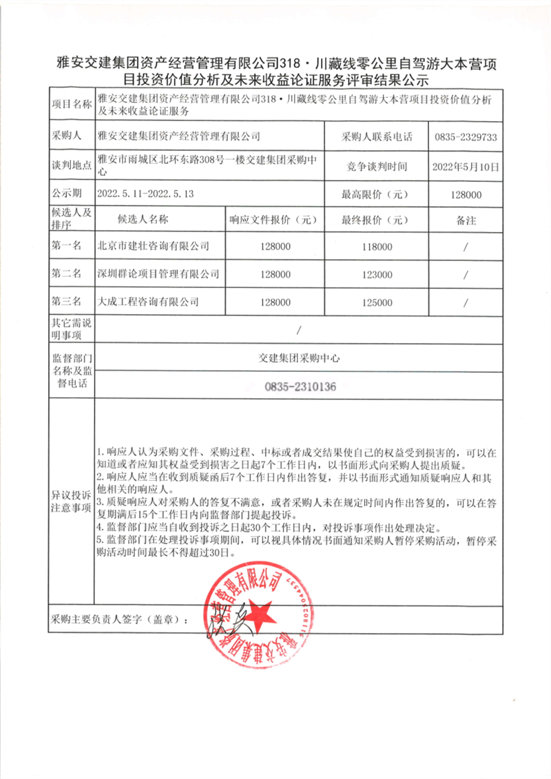 威廉希尔集团资产经营管理有限公司318·川藏线零公里自驾游大本营项目投资价值分析及未来收益论证服务评审结果公示