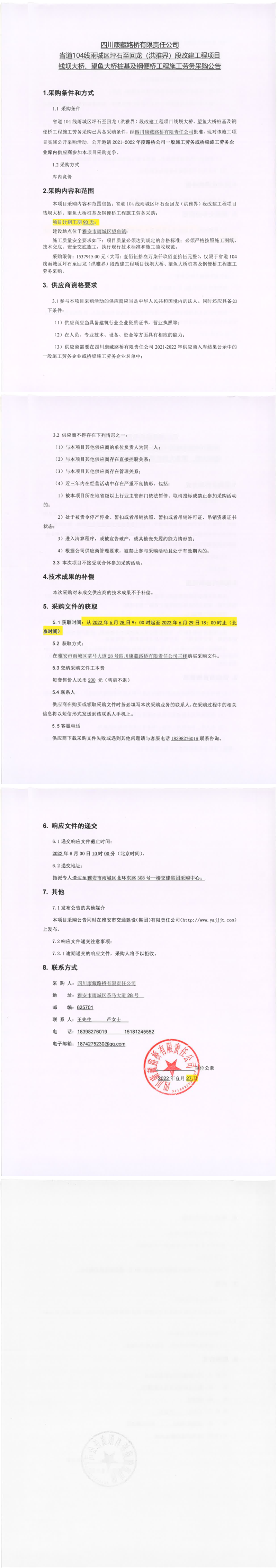 四川康藏路桥有限责任公司G318项目名山河大桥下部工程、皇茶大道天桥项目施工劳务采购(第二次)竞争谈判采购结果公示