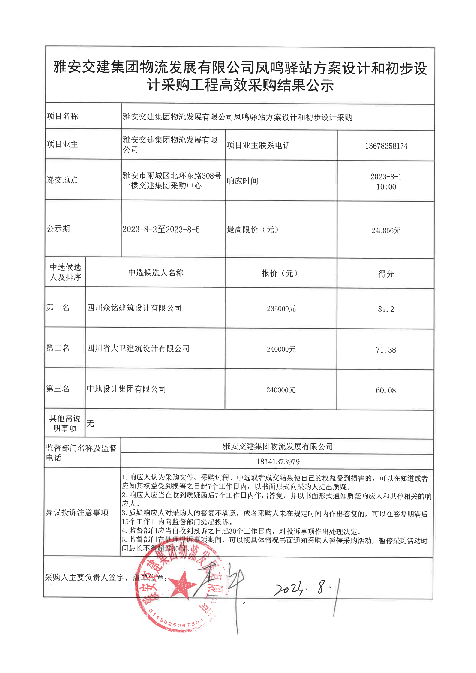 威廉希尔集团物流开展有限公司凤鸣驿站方案设计和初步设计采购工程高效采购结果公示