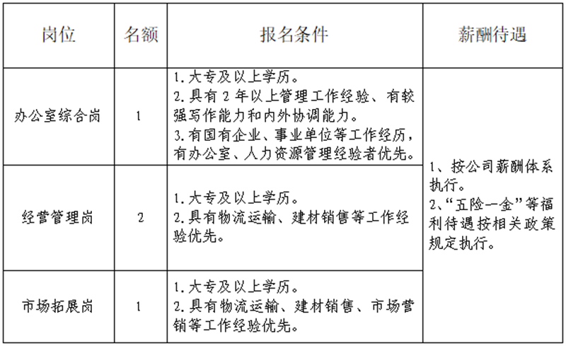 威廉希尔集团运通贸易有限公司是雅安市交通建设(集团)有限责任公司下属子公司。主要从事普通货运、建材销售、供应链管理、货运代理、货运信息咨询服务、仓储配送服务等工作。现根据公司业务开展需要,决定招聘4名工作人员,现将有关事项公告如下:
