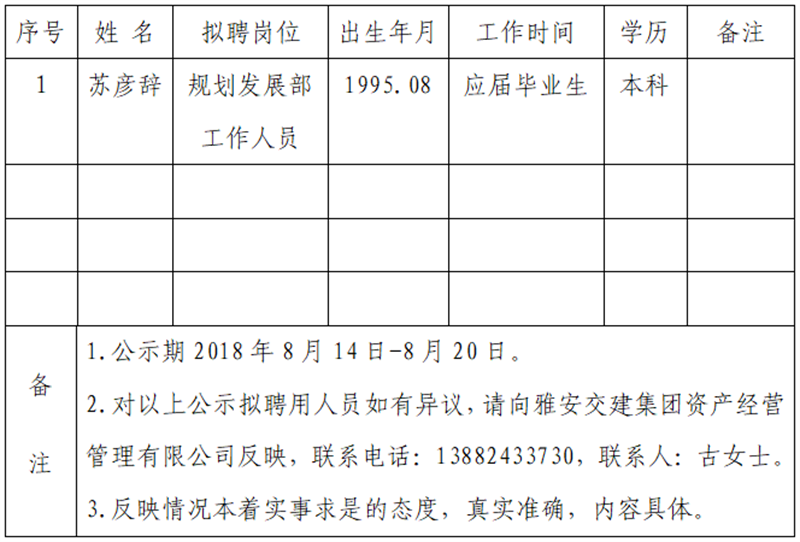 威廉希尔集团资产经营管理有限公司拟聘用人员公示(8月第一期)