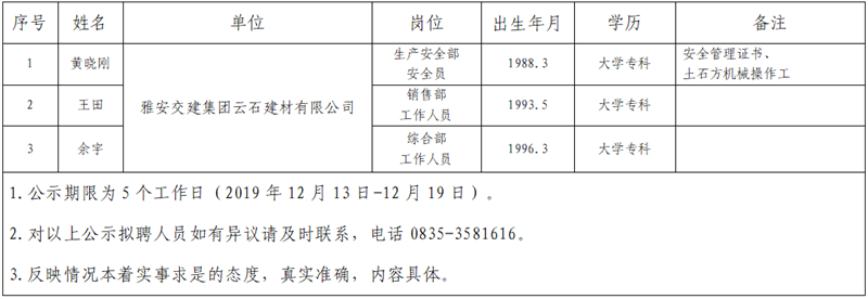 根据集团公司《人才选聘实施办法》,经研究,对以下拟聘用人员予以公示: