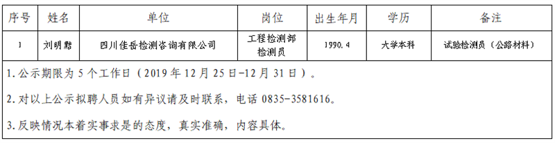 威廉希尔集团子公司拟聘用人员公示(佳岳公司)