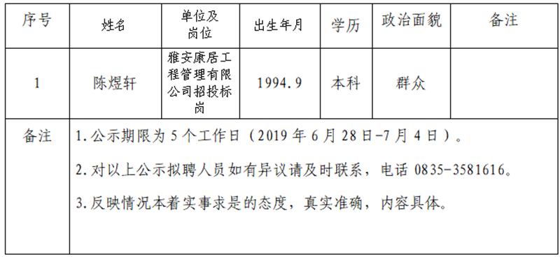 对以下拟聘用人员予以公示: