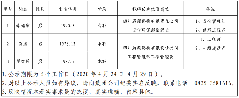 根据雅安市交通建设(集团)有限责任公司招聘公告,经公开报名、资格初审、笔试、面试、体检考察等环节,现将以下