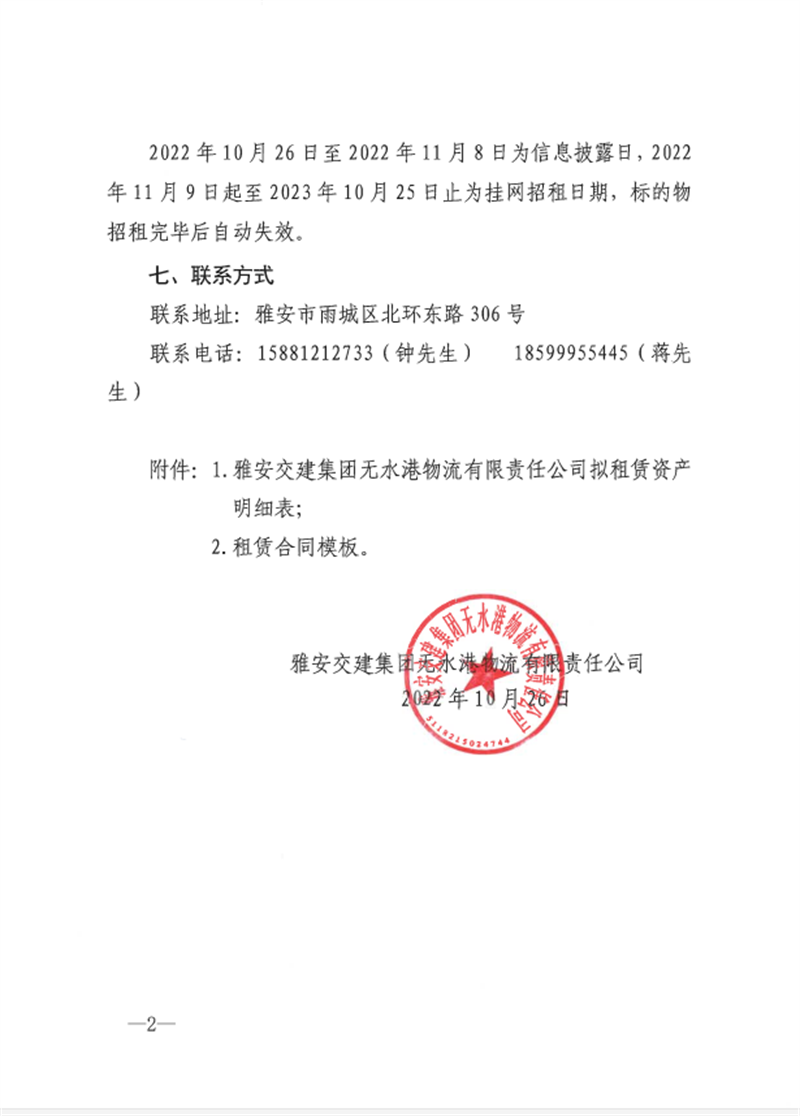 威廉希尔集团无水港物流有限责任公司关于雅安市凤鸣综合物流园资产公开招租的公告