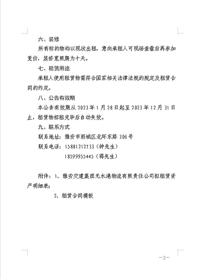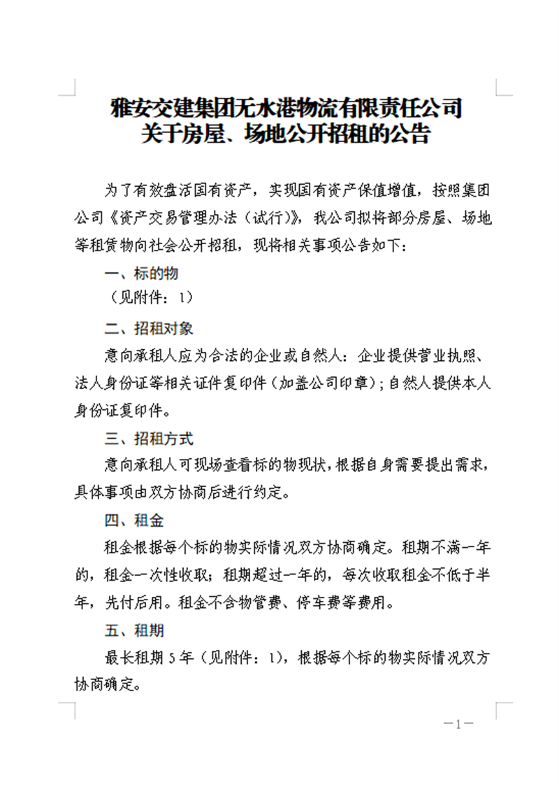 威廉希尔集团无水港物流有限责任公关于房屋、场地公开招租的公告