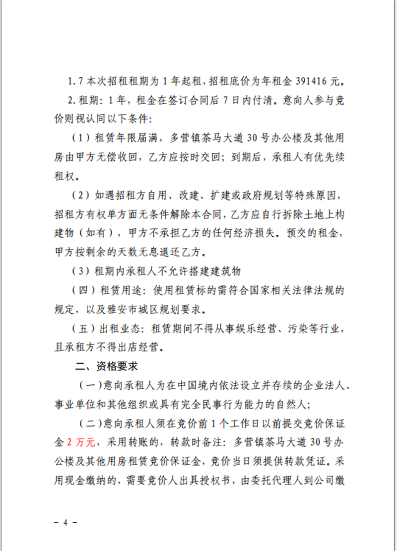 关于雅安市雨城区多营镇茶马大道30号办公楼及其他用房招租的公告附件1-4