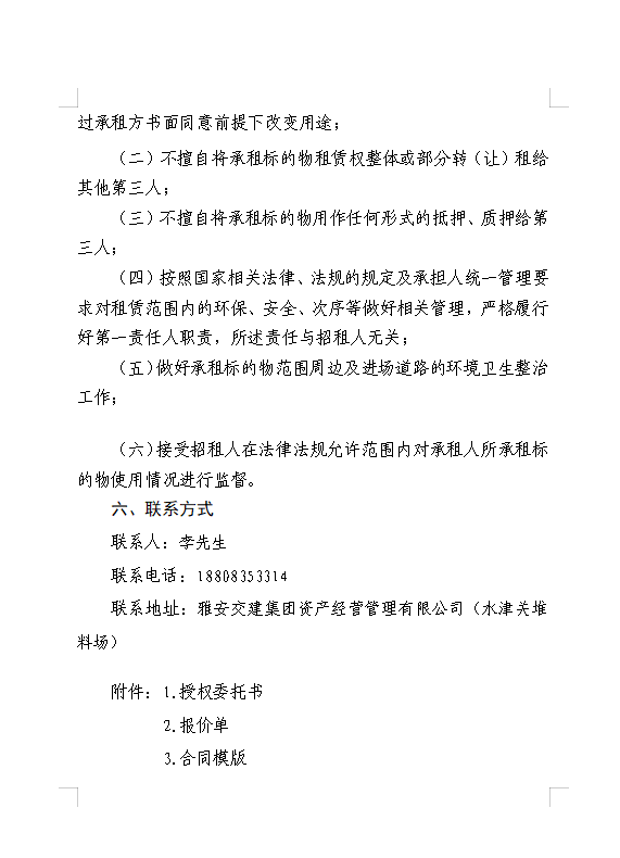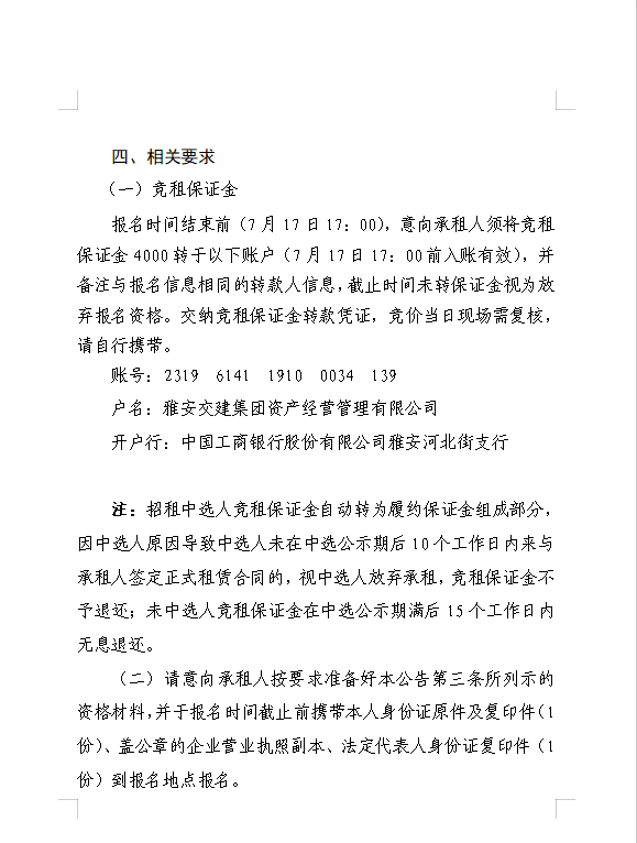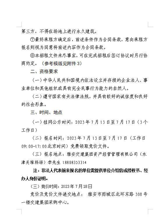 威廉希尔集团资产经营管理有限公司雨城区大兴镇水津关堆料场龙溪村四组和八组部分闲置临时用地招租公告