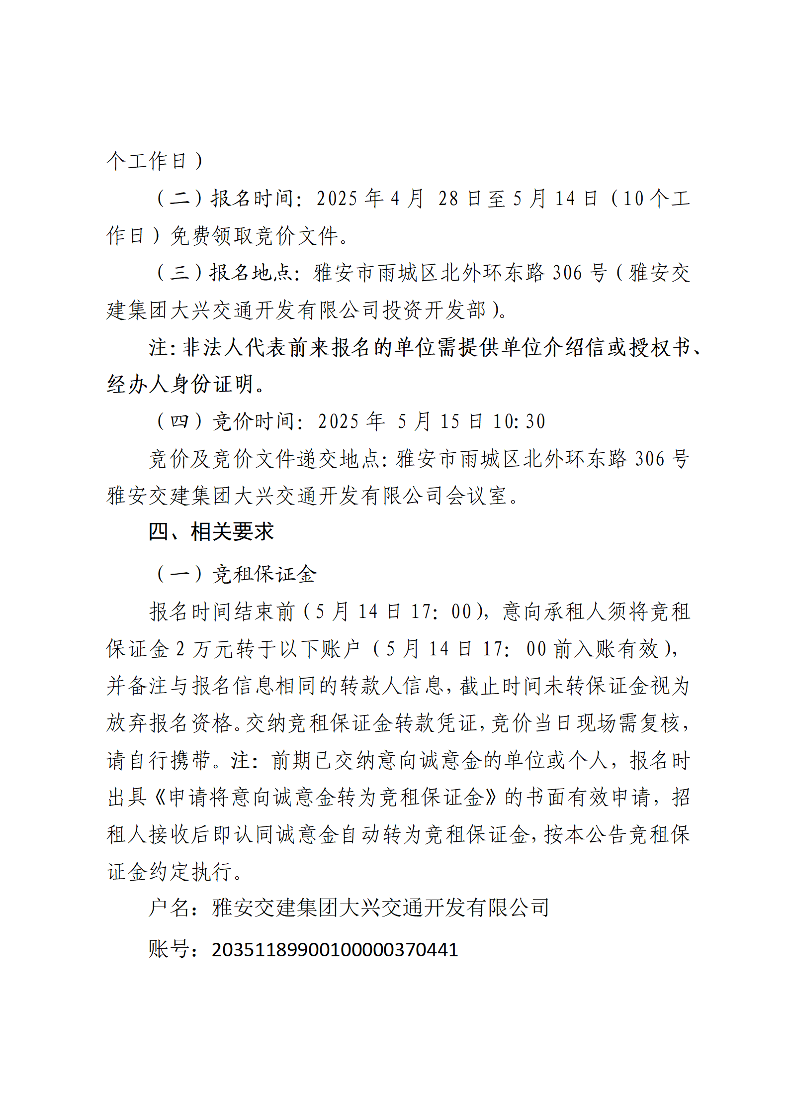 威廉希尔集团大兴交通开发有限公司 雅安市城市综合停车场水中坝综合停车场及配套用房招租公告