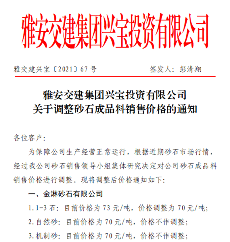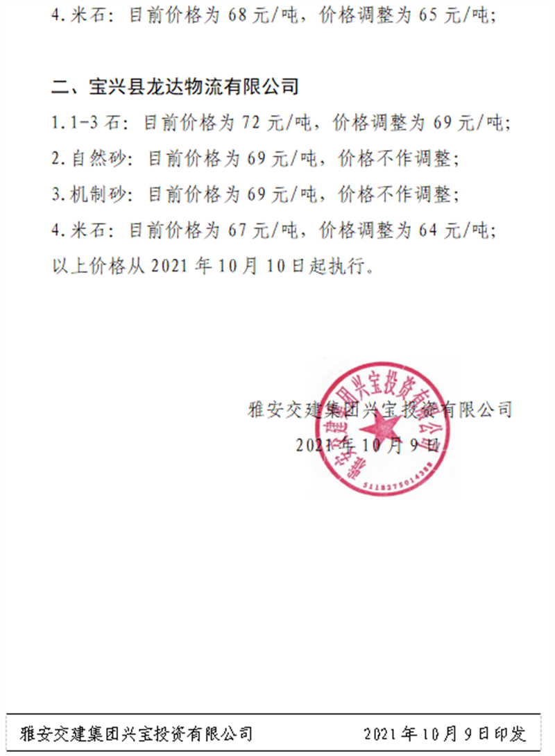 威廉希尔集团兴宝公司关于调整成品料销售价格的通知(2021.10.9)