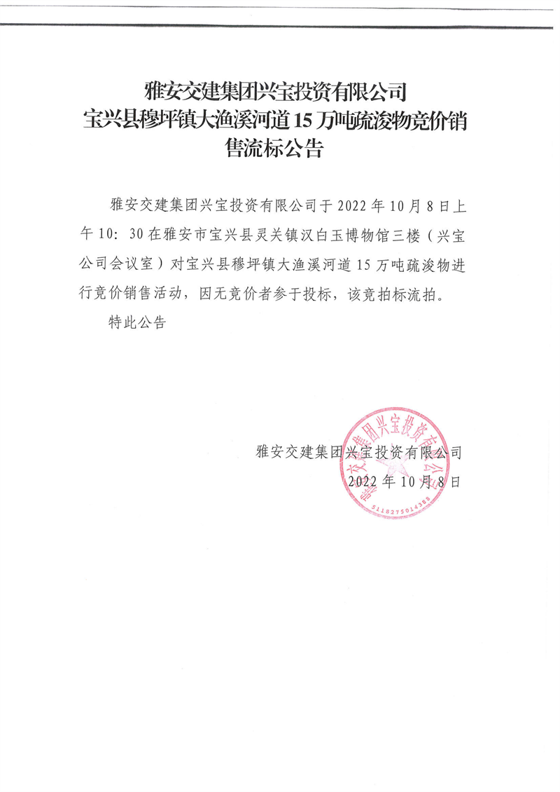大渔溪15万吨河道疏浚物流标公告10.8