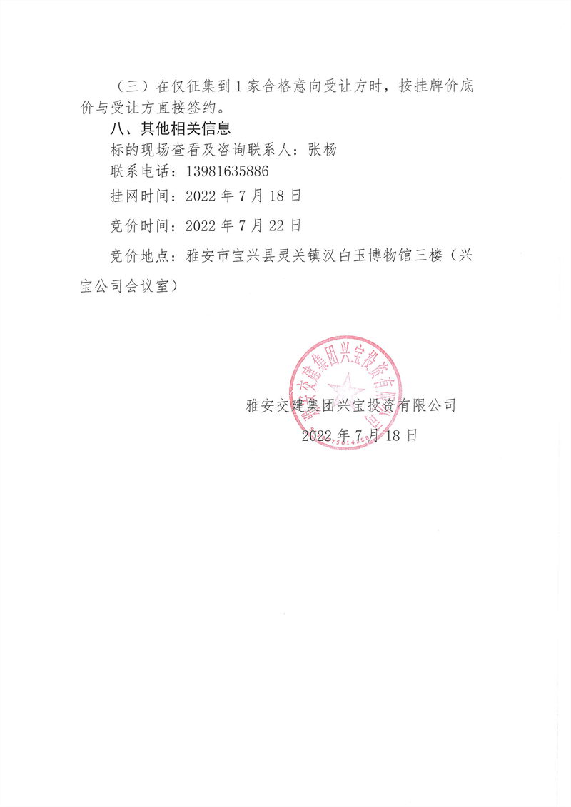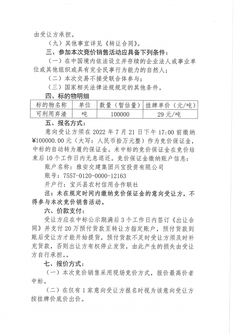 宝兴县灵关镇代碑寺土地整理项目一批可利用弃渣竞价销售公告7.18(5万吨)