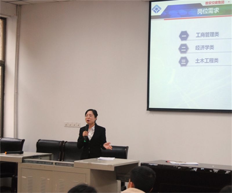 11月15日,由雅安市委、市政府主办,雅安市委组织部、雅安市委组织编制委员会办公室、雅安市人力资源和社会保障局承办的2018年“雅州英才”工程赴外招才引智高校行活动走进四川大学(望江校区),交建集团招聘代表参加了现场宣讲活动。