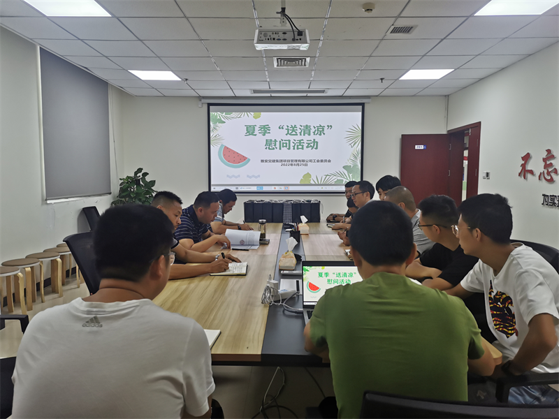 8月25日,项目管理公司工会组织召开夏季“送清凉”活动,为项目建设一线员工传递雅安市总工会、交建集团工会的关心和慰问。