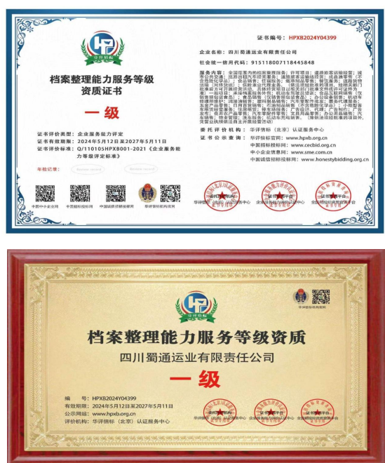 近期,威廉希尔集团四川蜀通运业有限责任公司成功取得档案整理能力服务等级一级资质证书,该证书是行业内最高级别的资质认证,旨在证明公司在档案整理、管理、保护等方面具备卓越的能力和丰富的经验。 该证书的取得,不仅提升了公司的品牌形象和市场竞争力,也为公司未来的开展奠定了坚实的基础,是蜀通公司开展历程中的一项重要里程碑。蜀通公司将以此为契机,不断提升自身实力和服务水平,为客户给予更加专业、优质的档案整理服务。