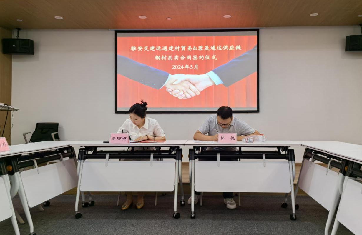 近期,威廉希尔集团运通建材贸易有限公司(以下简称:建材公司)与四川蓉晟通达供应链管理有限公司(以下简称:蓉晟通达公司)在成都举行钢材买卖合同签约仪式,标志着建材公司顺利完成2024年度首个市外贸易业务的签订工作,且合同金额超2300万元。