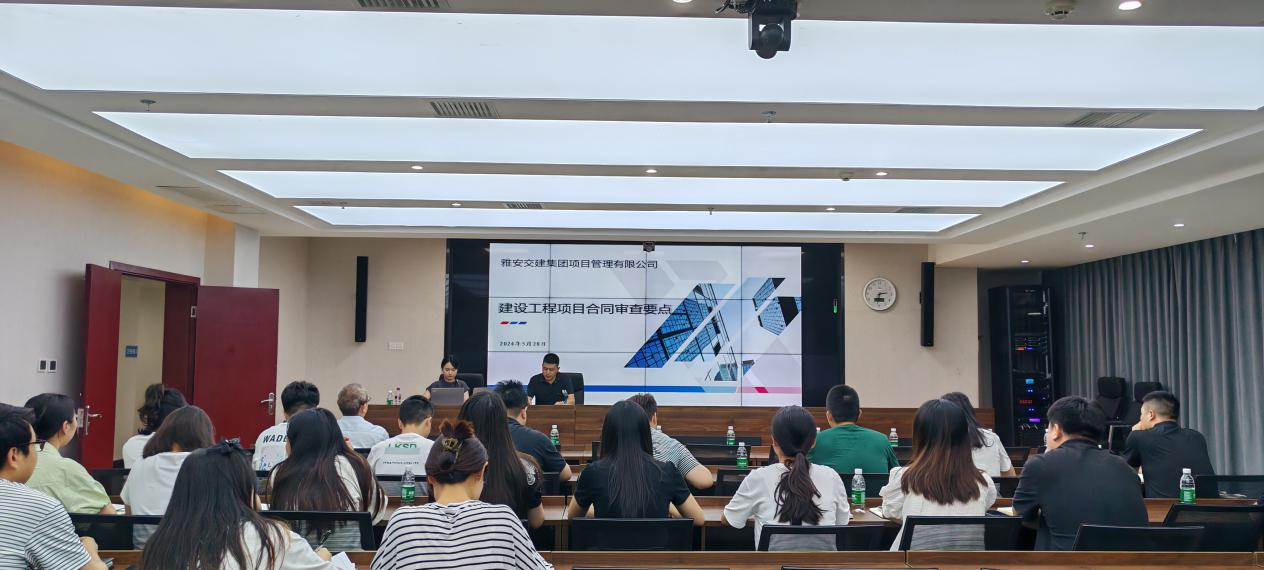 2024年5月28日,为避免合同风险,切实维护公司权益,使合同管理更加标准化、规范化,同时增强员工的合同风险意识、法律意识,确保各项业务的有序召开,项管公司邀请成都国浩律师事务所王慧律师在集团公司二楼会议室召开了建设工程项目合同审查要点专题培训活动,集团公司以及各子公司相关人员约40人参加了培训。