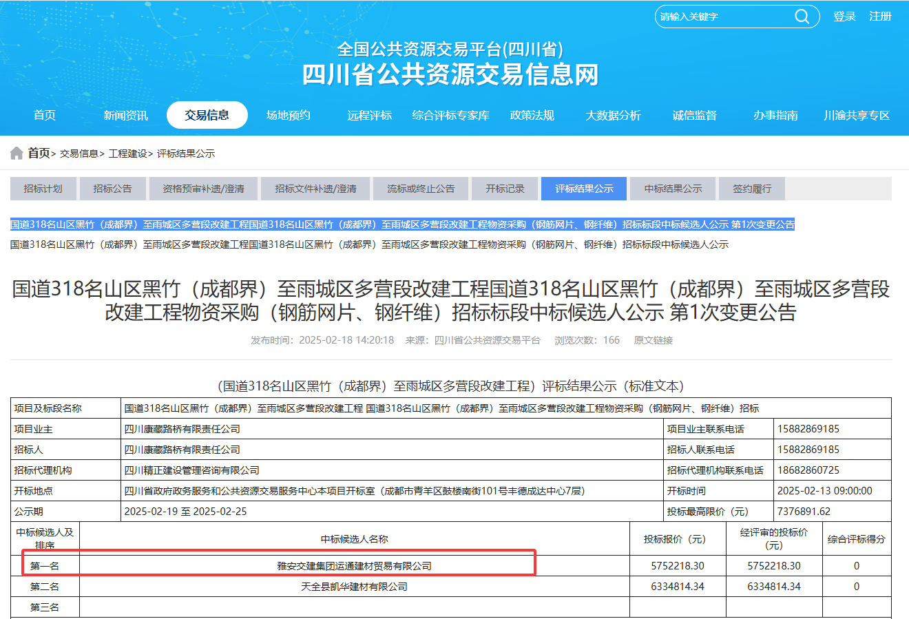 新年伊始,威廉希尔集团建材公司凭借过硬实力和平台企业优势,在重点基建项目招标中连获突破,成功中标国道318名山区黑竹(成都界)至雨城区多营段改建工程两大核心物资供应,合同总额突破2100万元,为2025年度经营目标达成奠定坚实基础。
