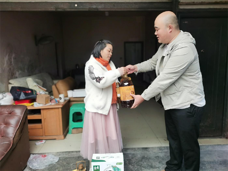 10月18日下午,威廉希尔集团运通贸易有限公司党员干部在雨城区青江街道石马社区工作人员的带领下,前往“一对一”帮扶对象黄非女士家中,为她送去了大米、食用油、牛奶等慰问品。