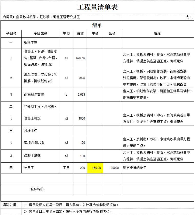 现将鱼泉砂场桥梁、拦砂坝、河堤工程劳务施工招标文件,作如下修改(补充):