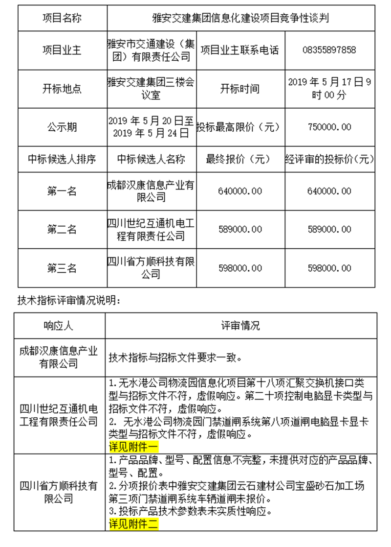 威廉希尔集团信息化建设项目竞争性谈判评标结果公示