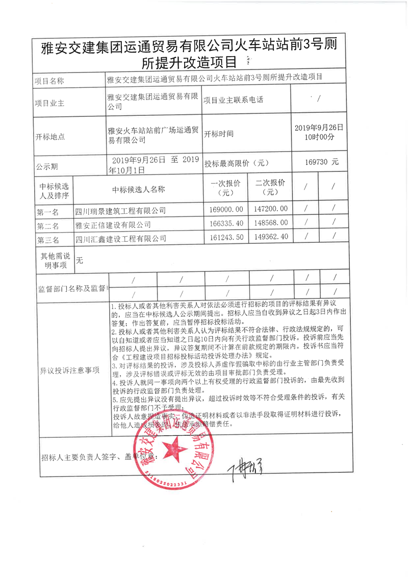 威廉希尔集团运通贸易有限公司火车站站前广场3号厕所改造提升项目(第二次)竞争性谈判结果公示