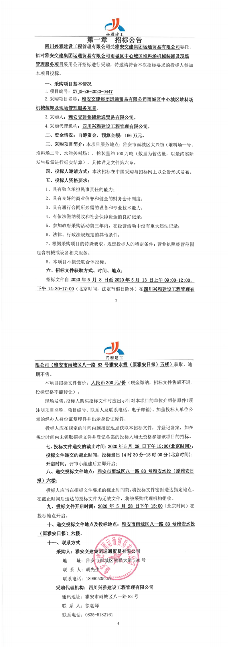威廉希尔集团运通贸易有限公司雨城区中心城区堆料场机械装卸及现场管理服务项目招标公告