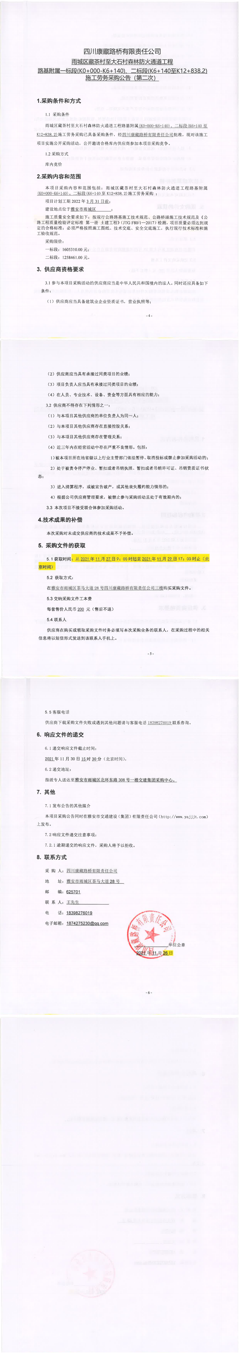 四川康藏路桥有限责任公司雨城区藏茶村至大石村森林防火通道工程路基附属一标段(K0+000-K6+140)、二标段(K6+140至K12+838.2)施工劳务采购公告(第二次)