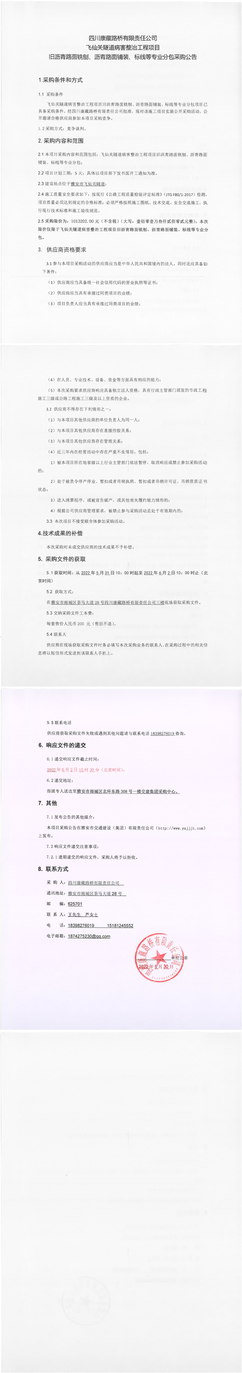 四川康藏路桥有限责任公司飞仙关隧道病害整治工程项目旧沥青路面铣刨、沥青路面铺装、标线等专业分包采购公告