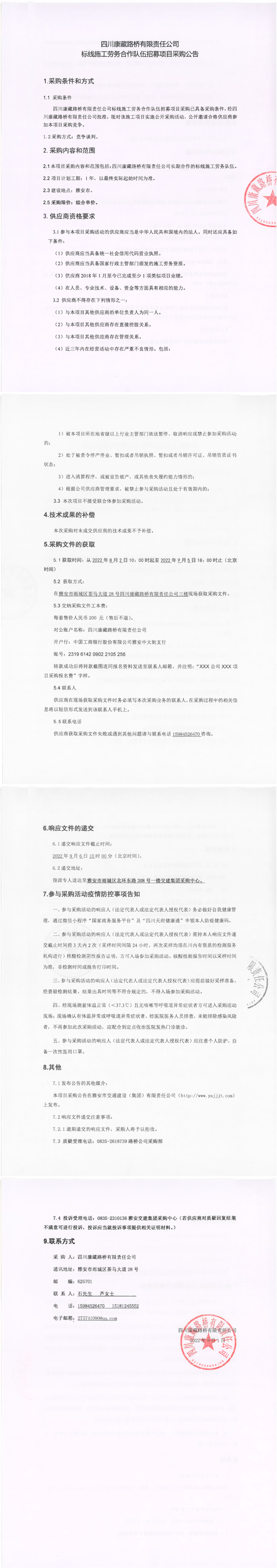 四川康藏路桥有限责任公司标线施工劳务合作队伍招募项目采购公告
