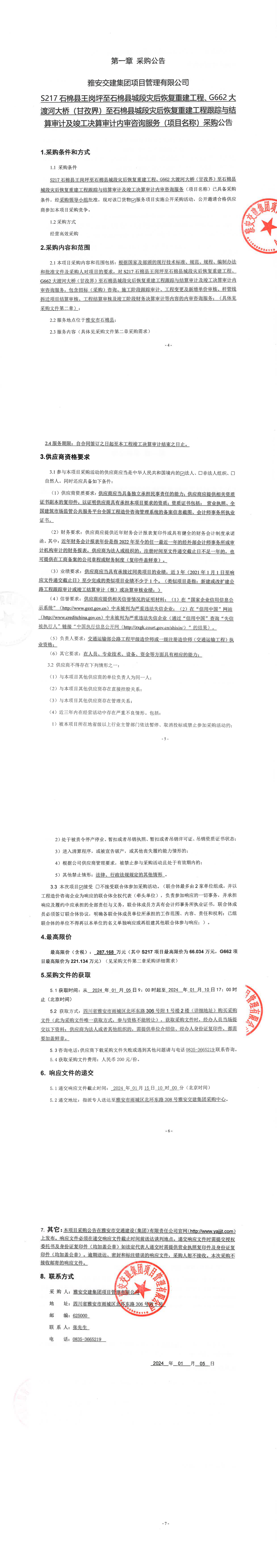 威廉希尔集团项目管理有限公司S217石棉县王岗坪至石棉县城段灾后恢复重建工程、G662大渡河大桥(甘孜界)至石棉县城段灾后恢复重建工程跟踪与结算审计及竣工决算审计内审咨询服务(项目名称)采购公告