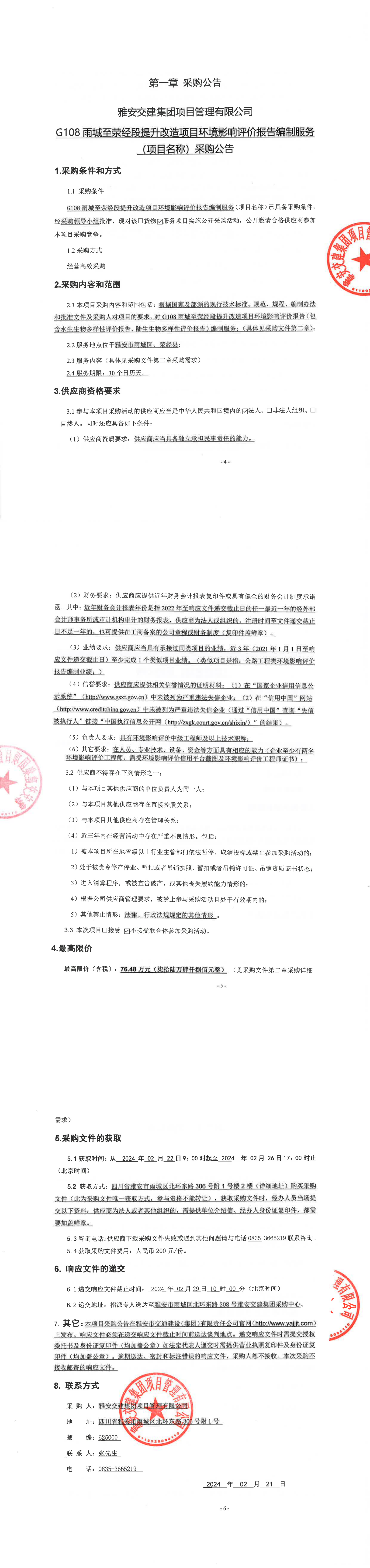 威廉希尔集团项目管理有限公司G108雨城至荥经段提升改造项目环境影响评价报告编制服务(项目名称)采购公告