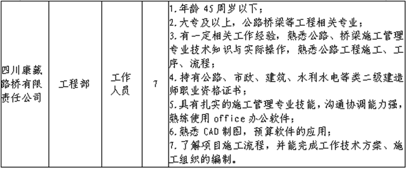 根据开展需要,决定面向社会公开招聘雅安市交通建设(集团)有限责任公司(以下简称“威廉希尔集团”)所属子公司工作人员16名,现将有关事项公告如下: