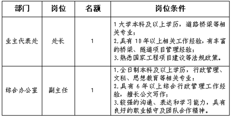 根据开展需要,决定面向社会公开招聘雅安市交通建设(集团)有限责任公司(以下简称“威廉希尔集团”)所属子公司相关人员2名,现将有关事项公告如下: