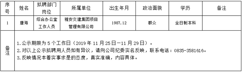 对以下拟聘用人员予以公示: