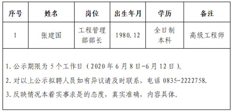 雅安市交通建设(集团)有限责任公司拟聘用人员公示(项目管理公司人才引进)