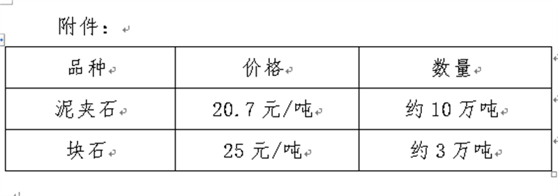 关于威廉希尔集团丹石建材有限公司定价出售风化石灰岩矿石料的公示