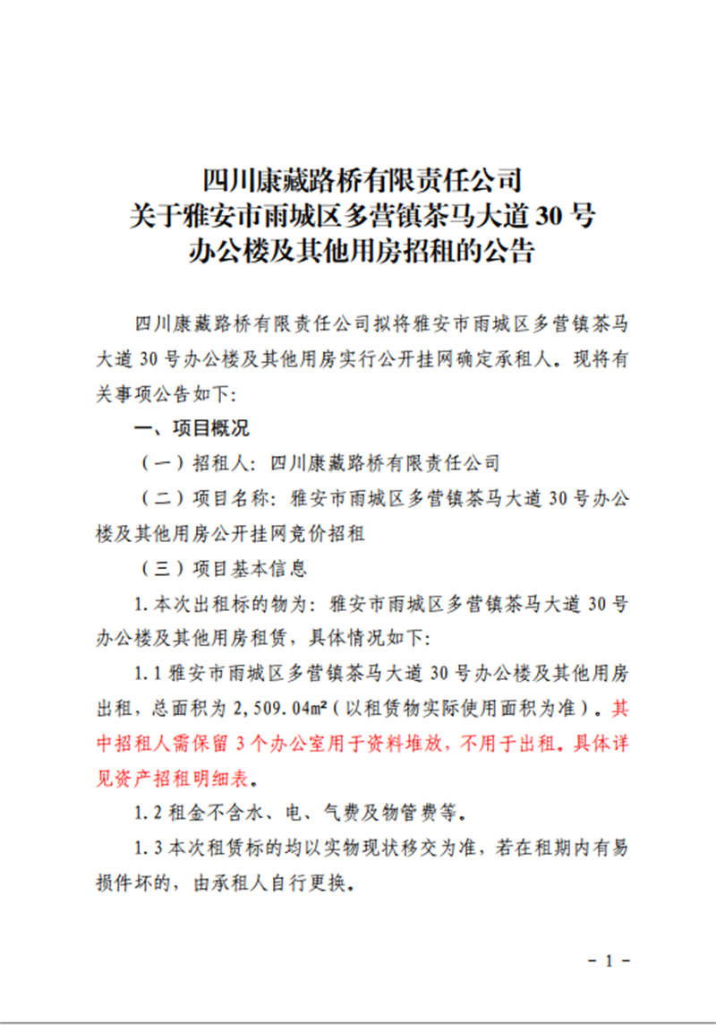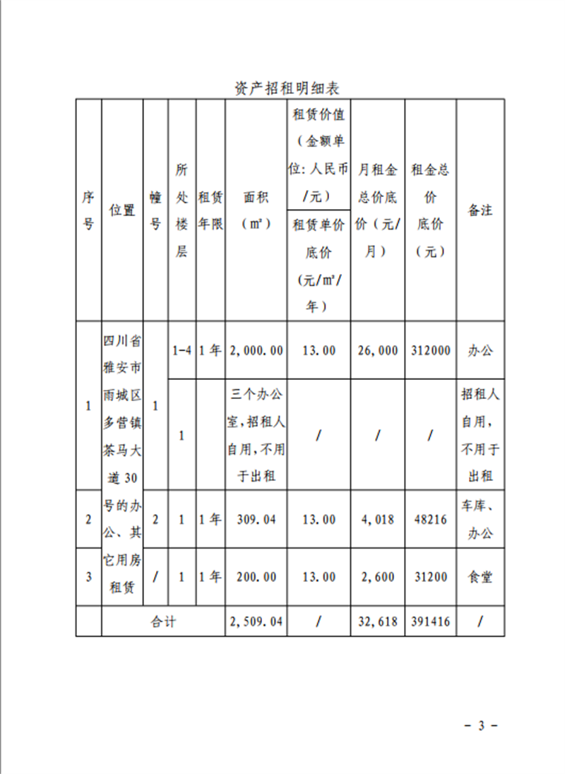 关于雅安市雨城区多营镇茶马大道30号办公楼及其他用房招租的公告附件1-4