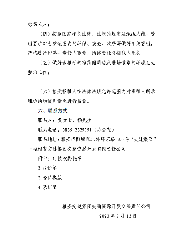 威廉希尔集团交通资源开发有限责任公司雨名快速通道名山服务区场地(游乐类项目)招租公告