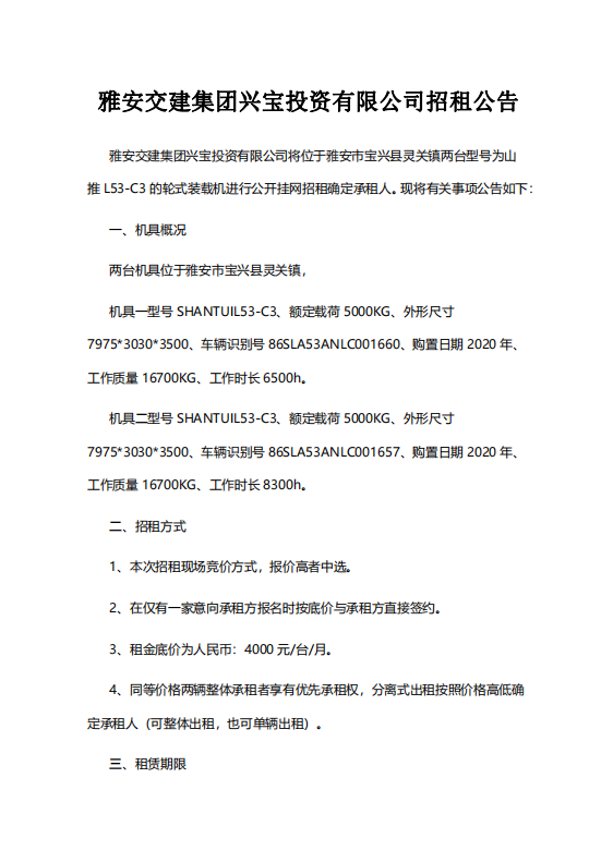 威廉希尔集团兴宝投资有限公司招租公告