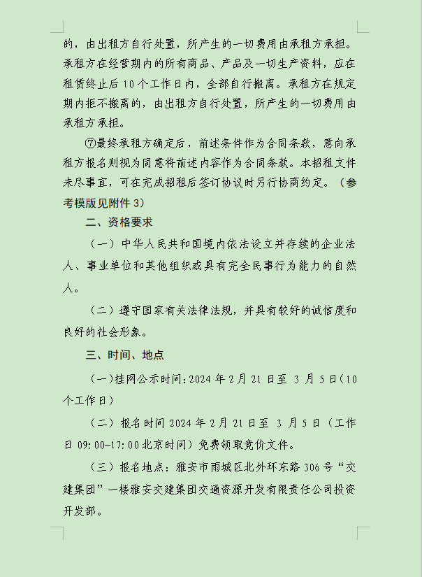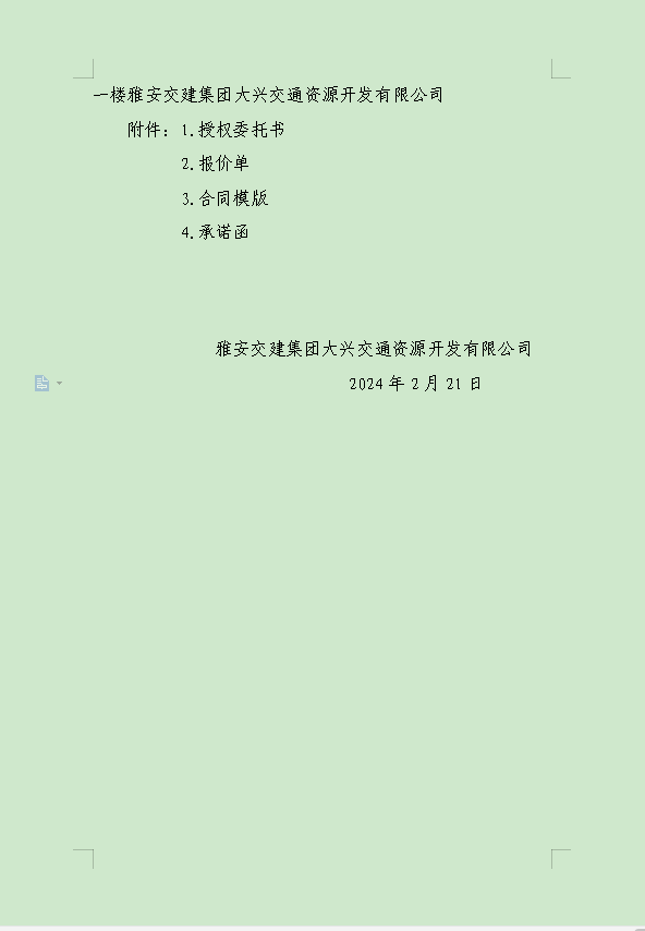 威廉希尔集团大兴交通资源开发有限公司关于雨城区姚桥片区15-09地块2024年竞价招租的公告附件