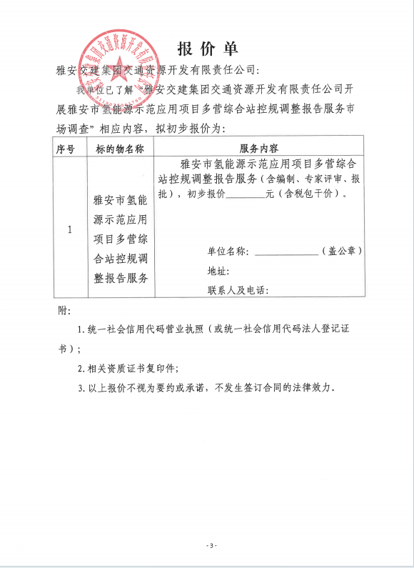 威廉希尔集团交通资源开发有限责任公司雅安市氢能源示范应用项目多营综合站控规调整报告服务市场调查公告